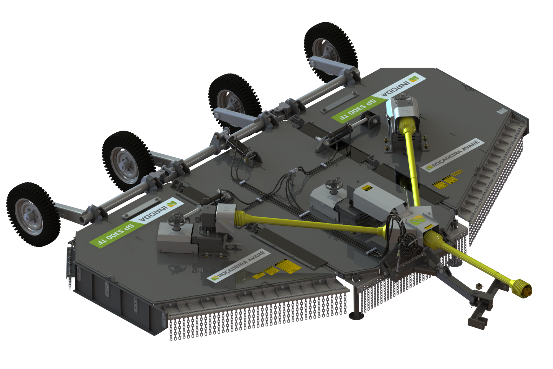 Roçadeira de arrasto aplicada em trabalhos de roçagem de pastagens, palhadas e restos culturais. Rotação das facas constantes garantida com o acionamento através da tomada de força do trator, caixas multiplicadoras dotadas de sistema de giro livre. Articulação para acompanhamento do desnível do terreno e facilitação do transporte.